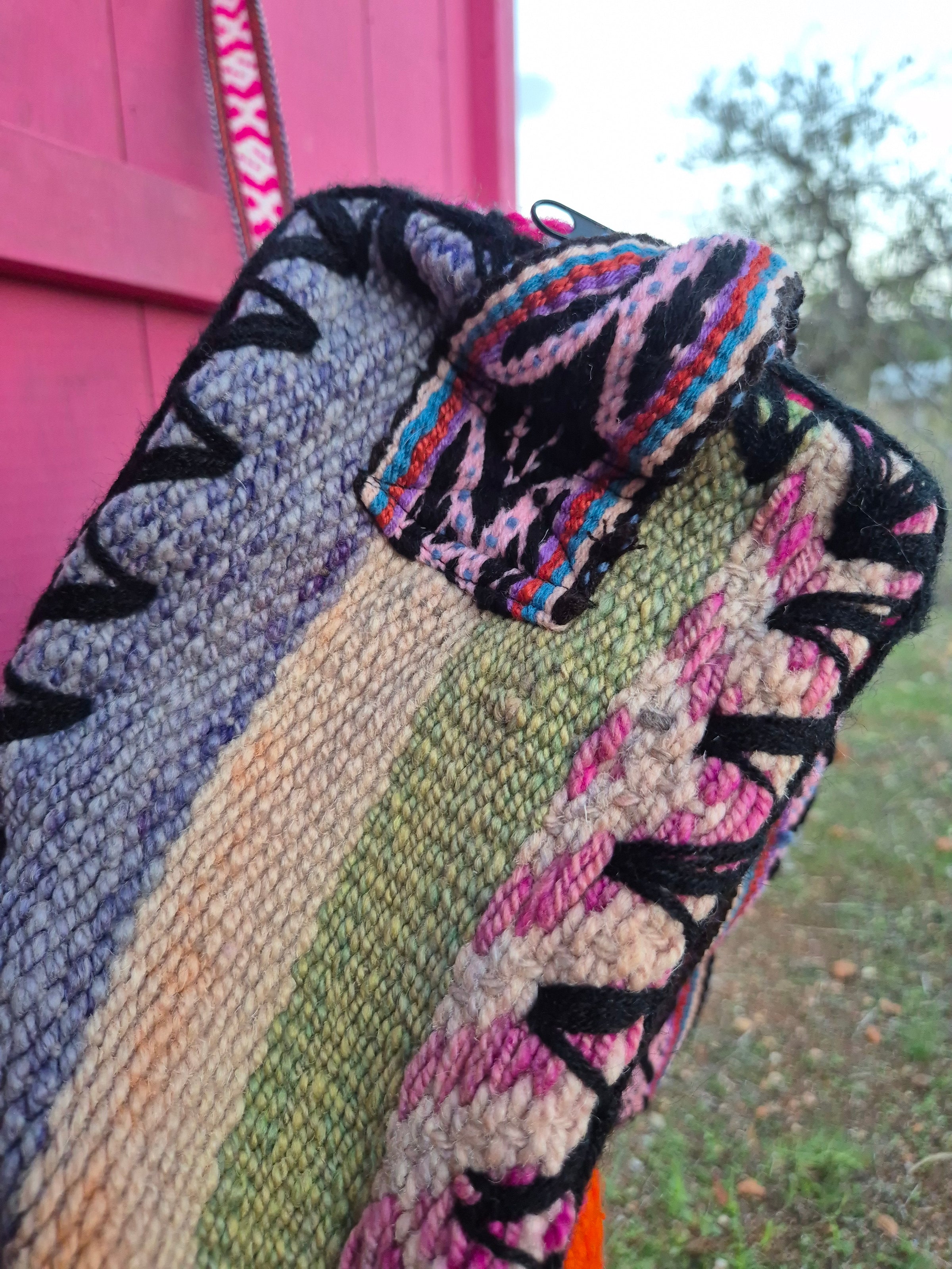 This beautiful bag is handmade in Peru of vintage fabrics which are handwoven and natural dyed.