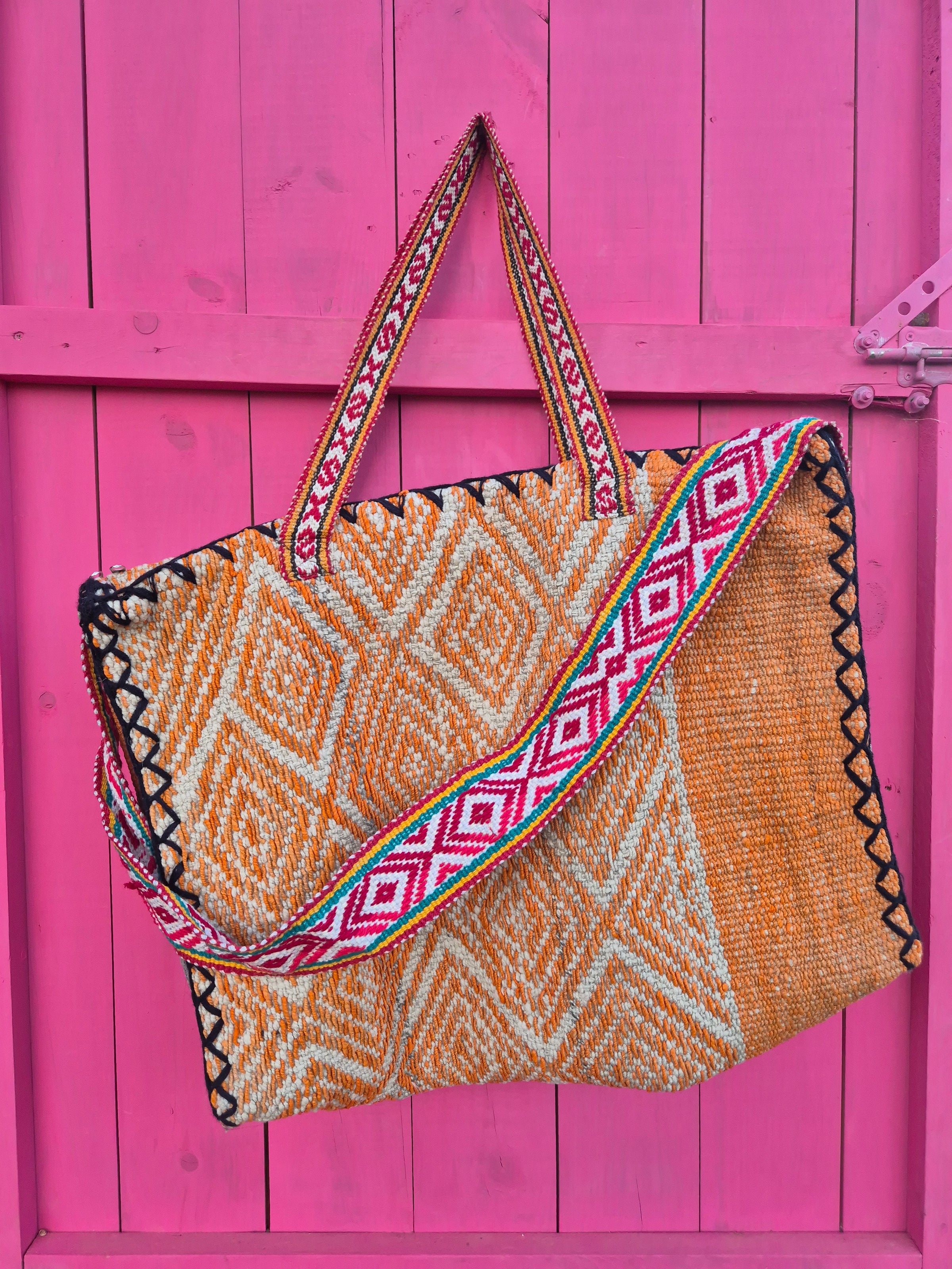 This beautiful bag is handmade in Peru of vintage fabrics which are handwoven and natural dyed.