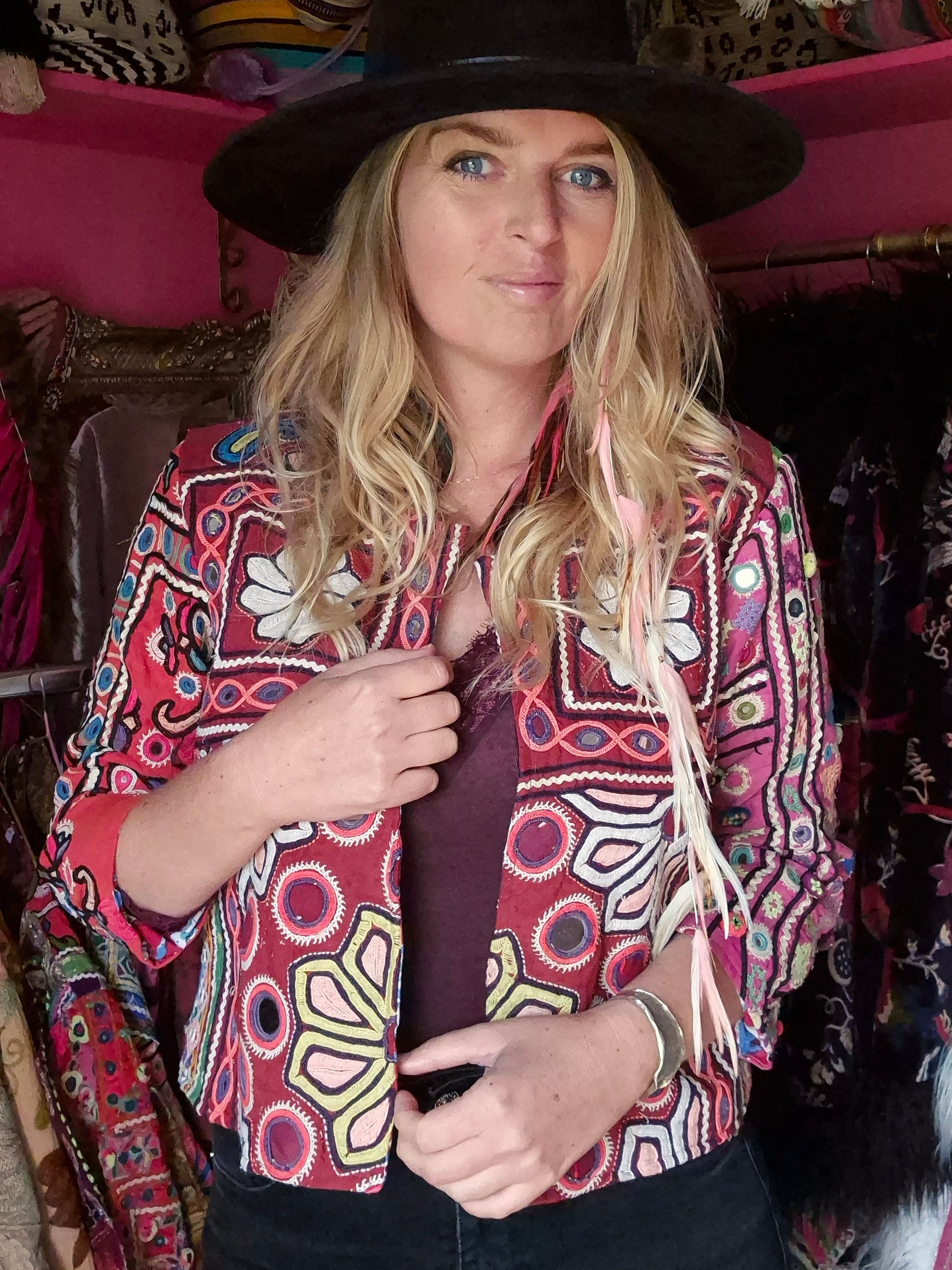 Beautiful jacket made of rare vintage fabrics, which were made by the Rabari women, a tribal group from Kutch in India.