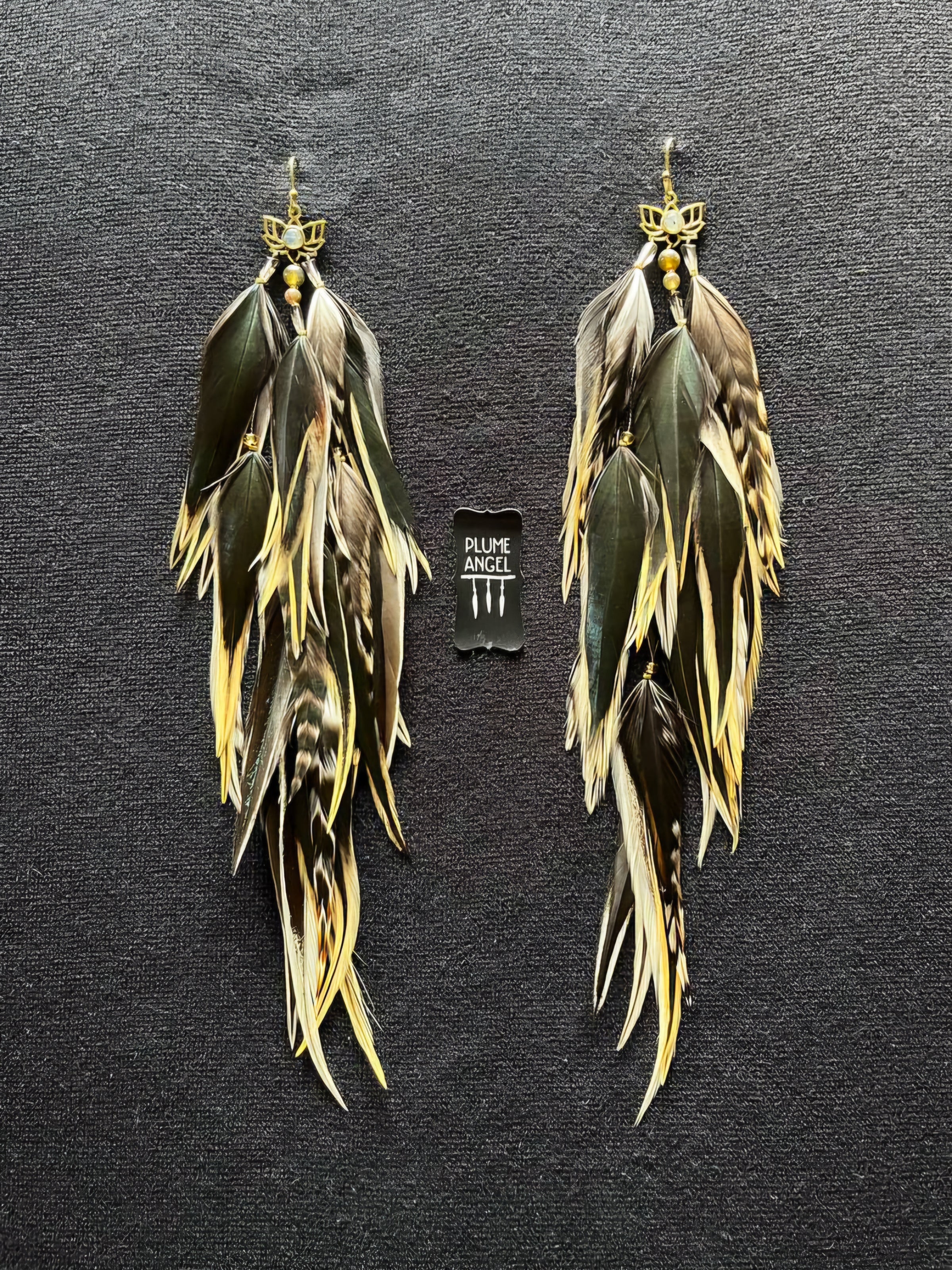Beautiful handmade feather earrings. Made of natural feathers by mothers in Bali.