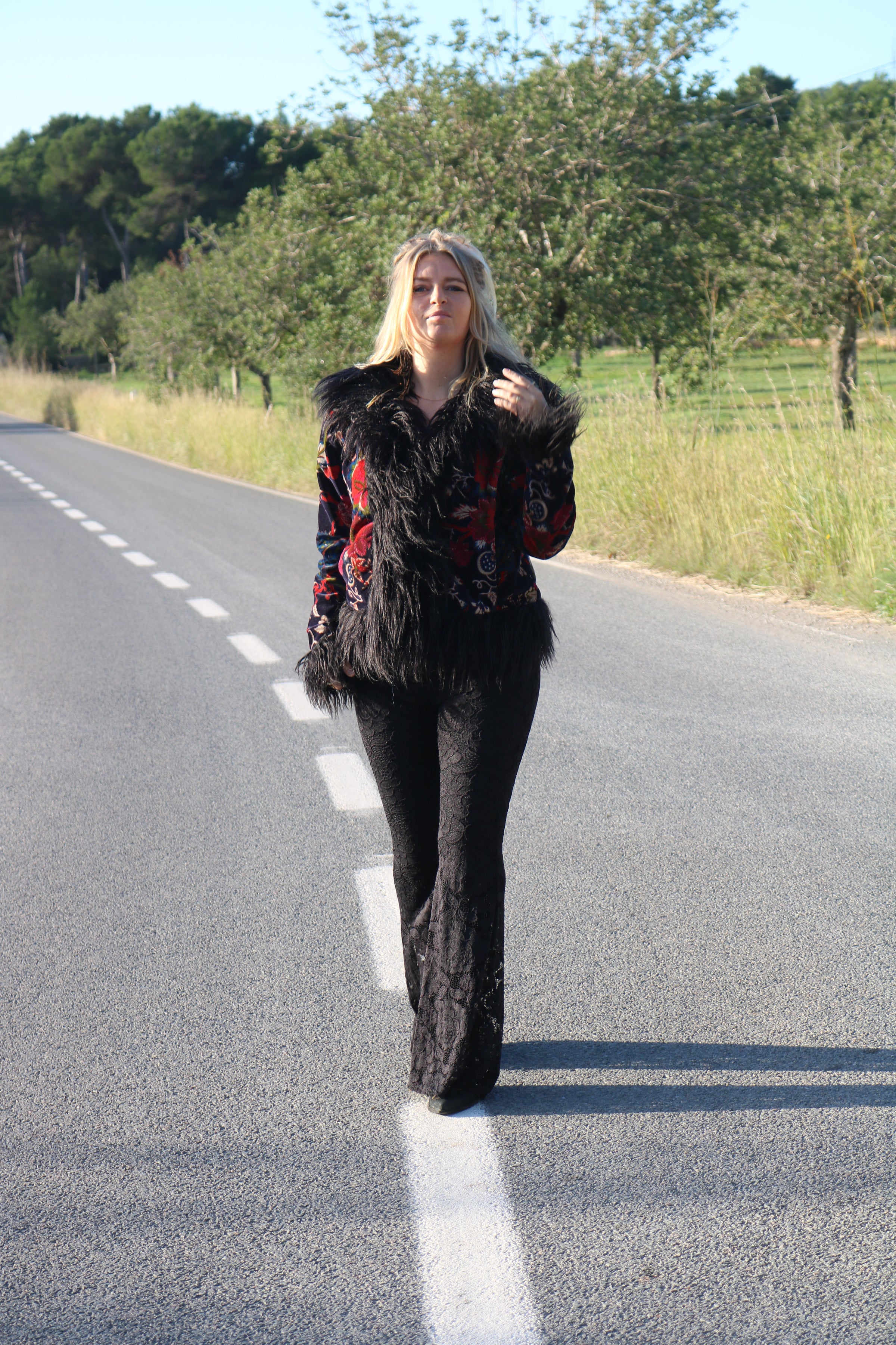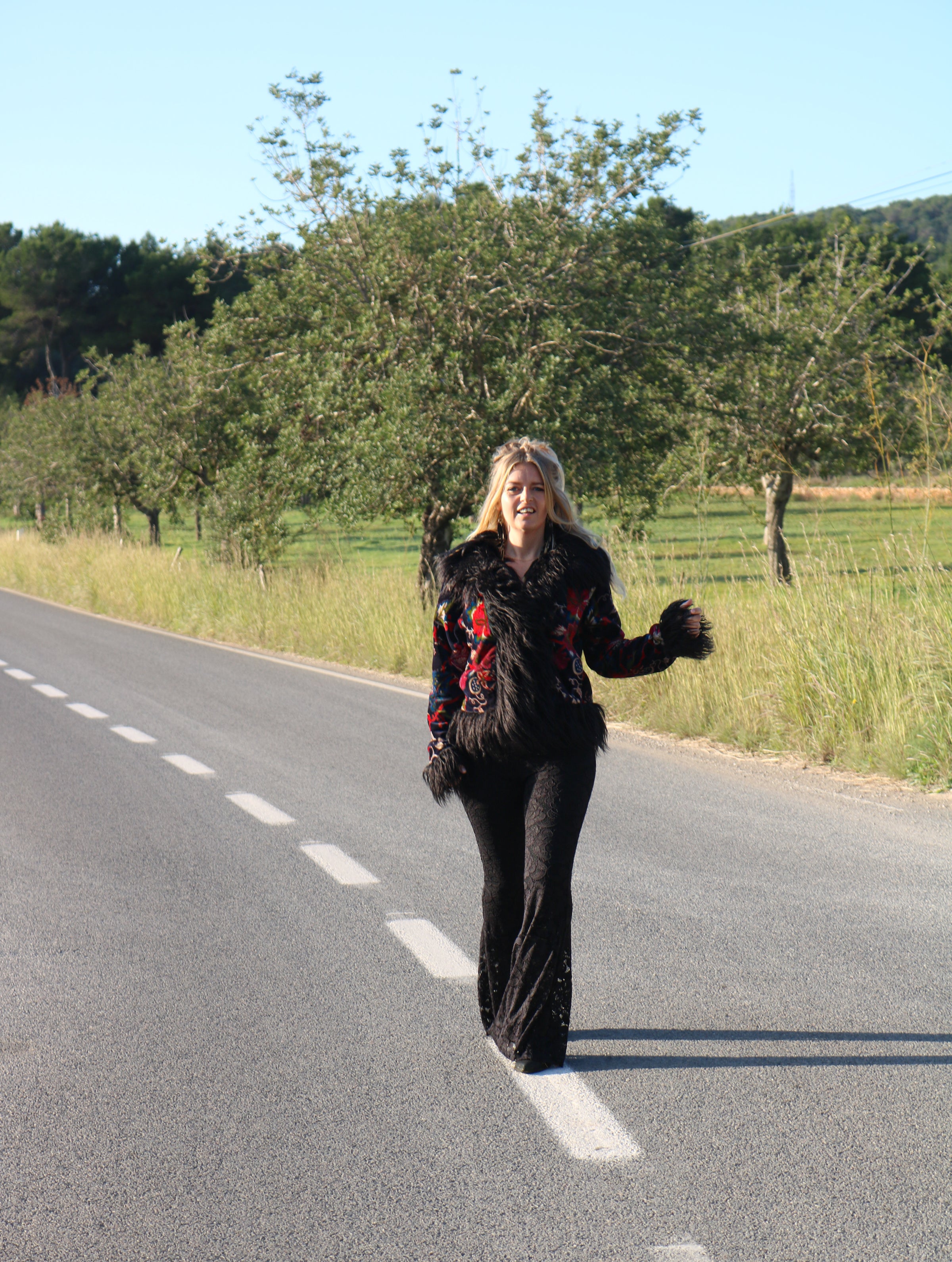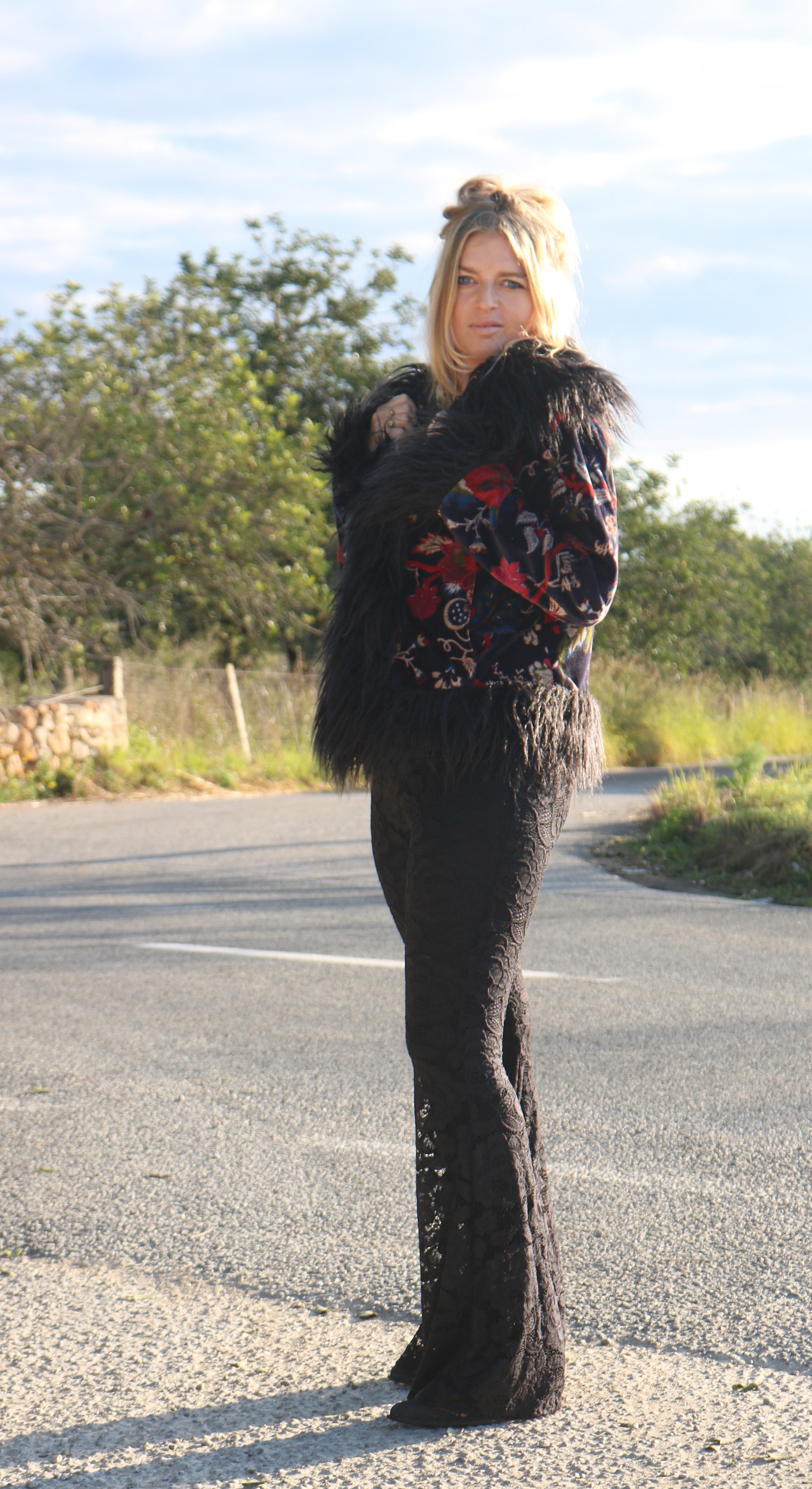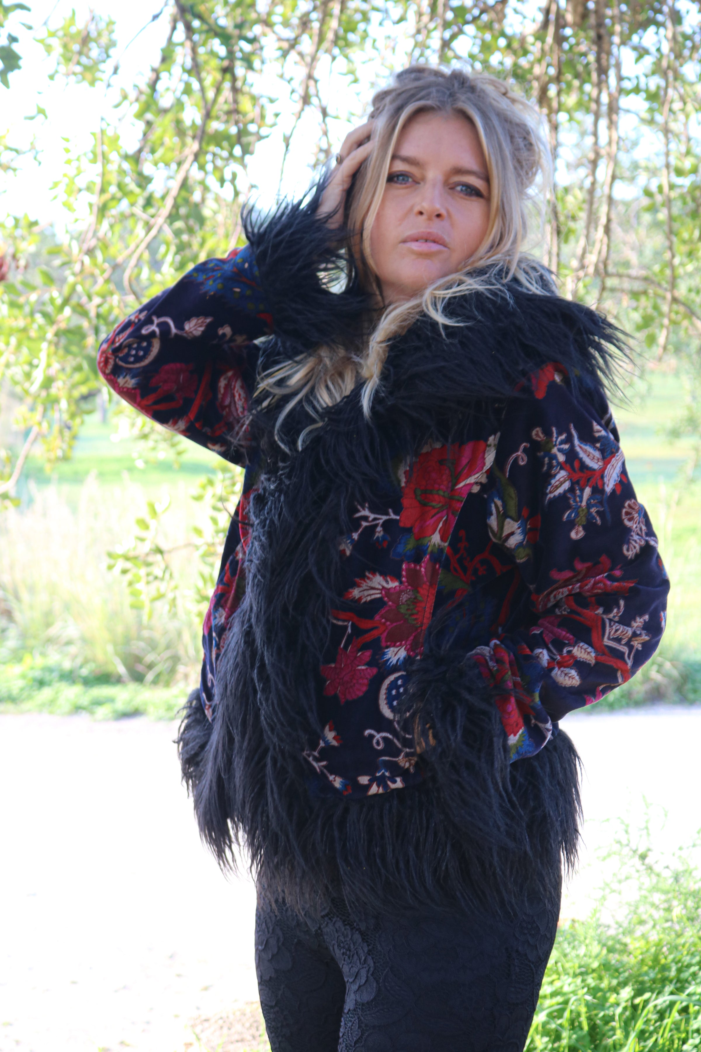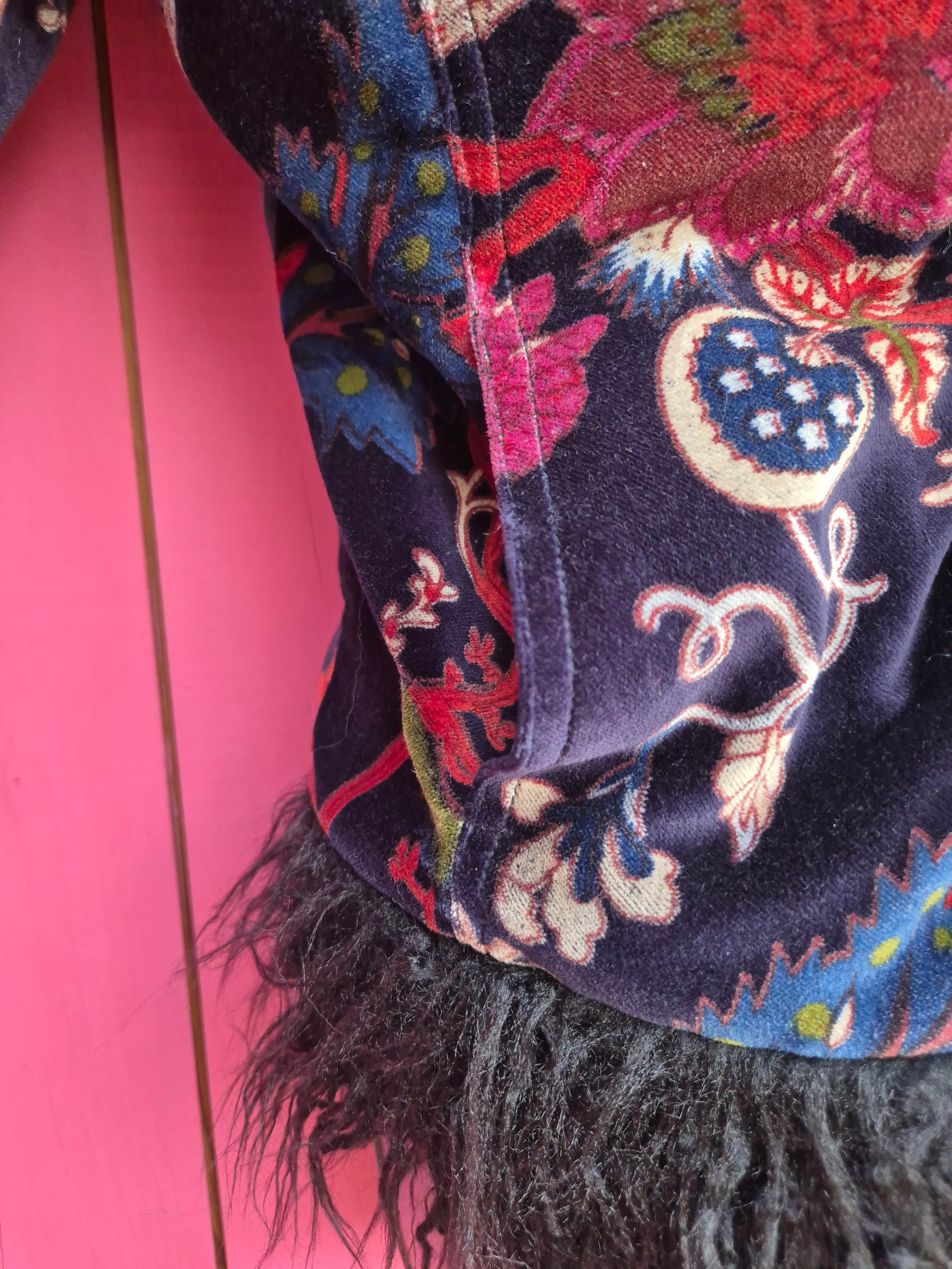 Original Fairia Ibiza jacket made of velvet and lined with cotton or fleece (super warm). Penny Lane style and super unique. Has side pockets and the jacket closes with a hook.
