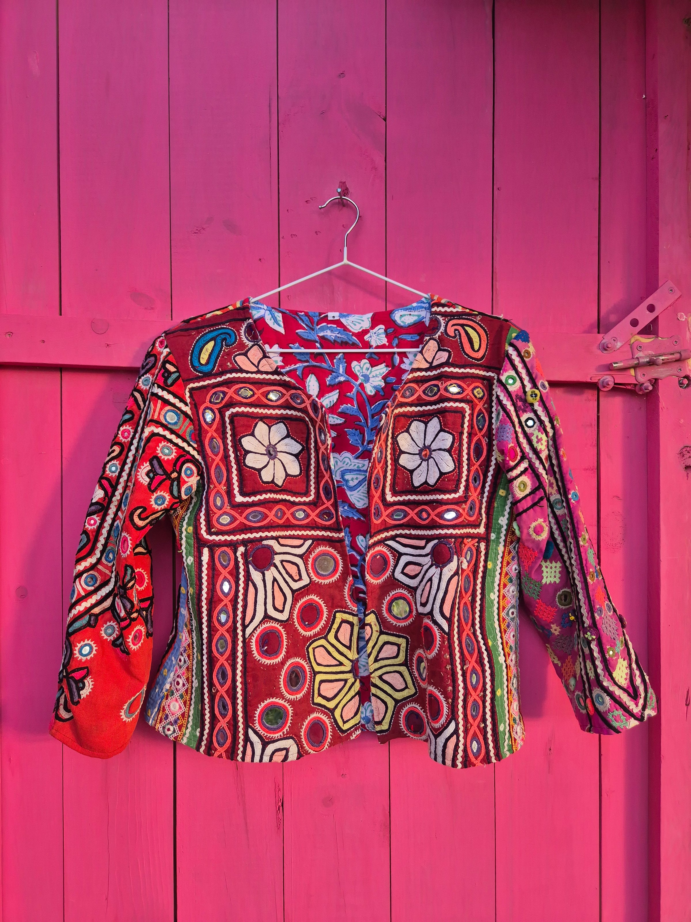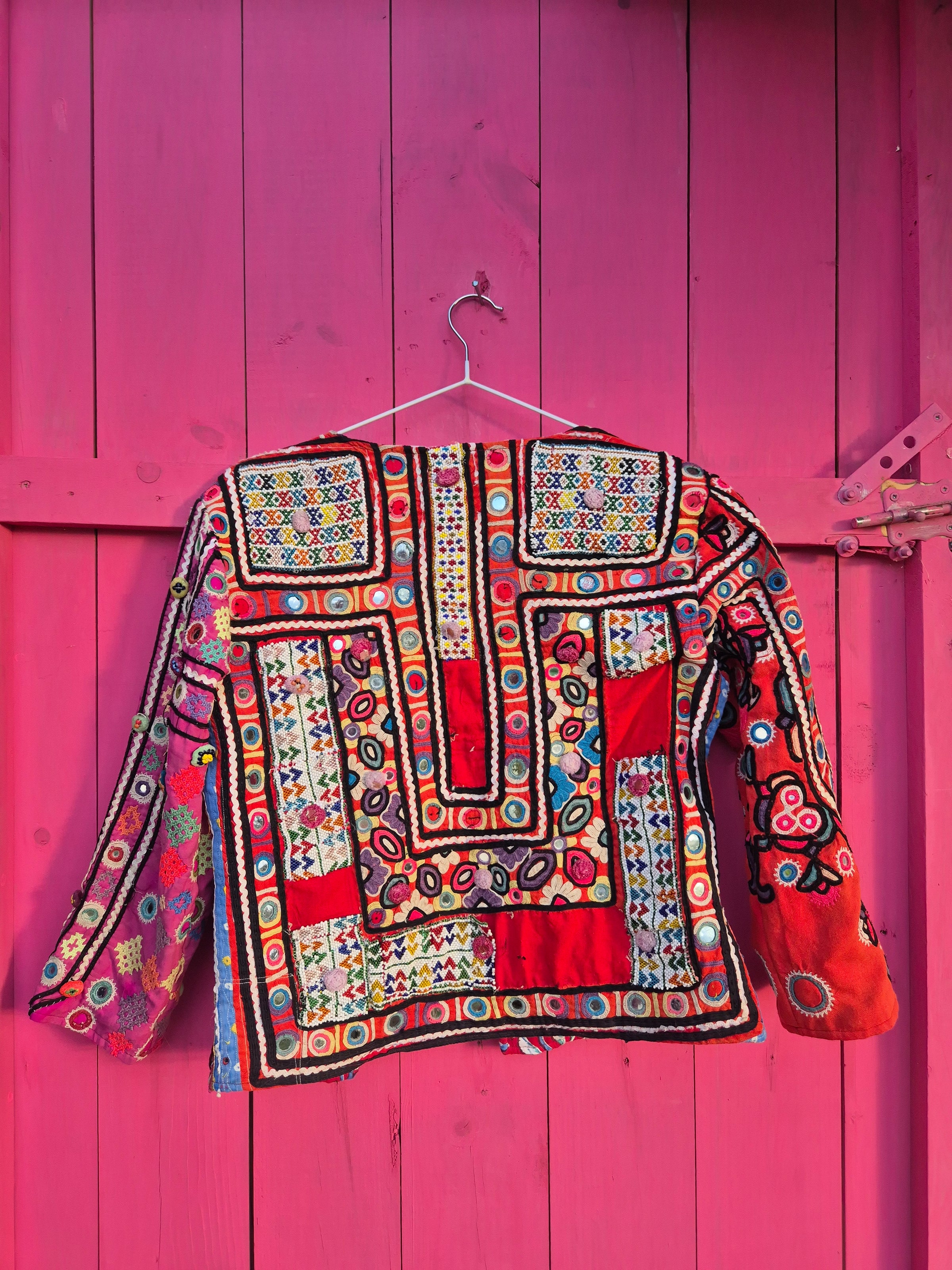 Beautiful jacket made of rare vintage fabrics, which were made by the Rabari women, a tribal group from Kutch in India.