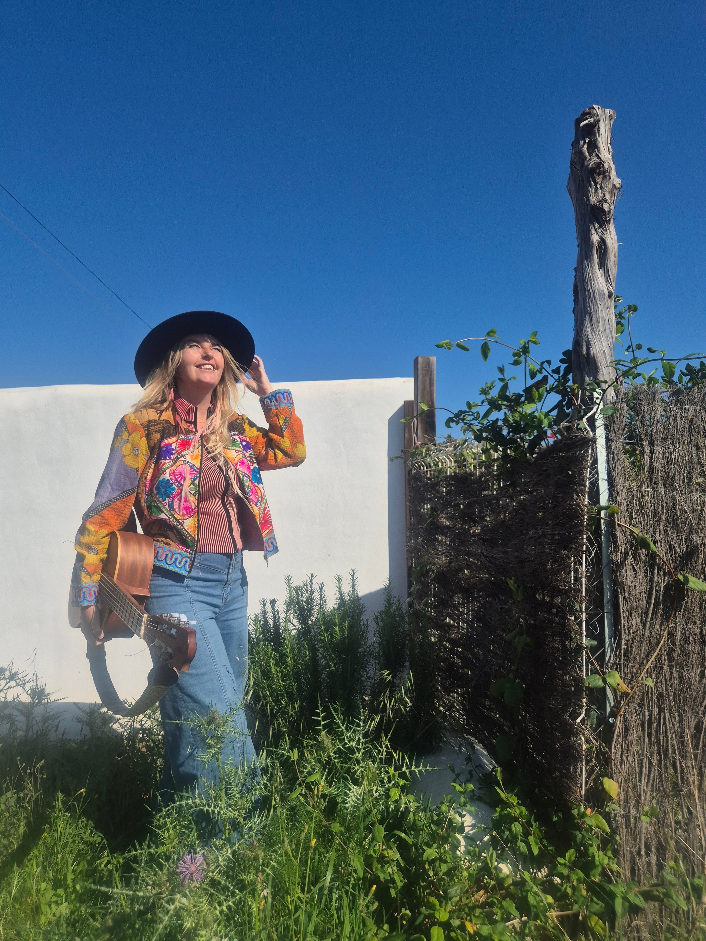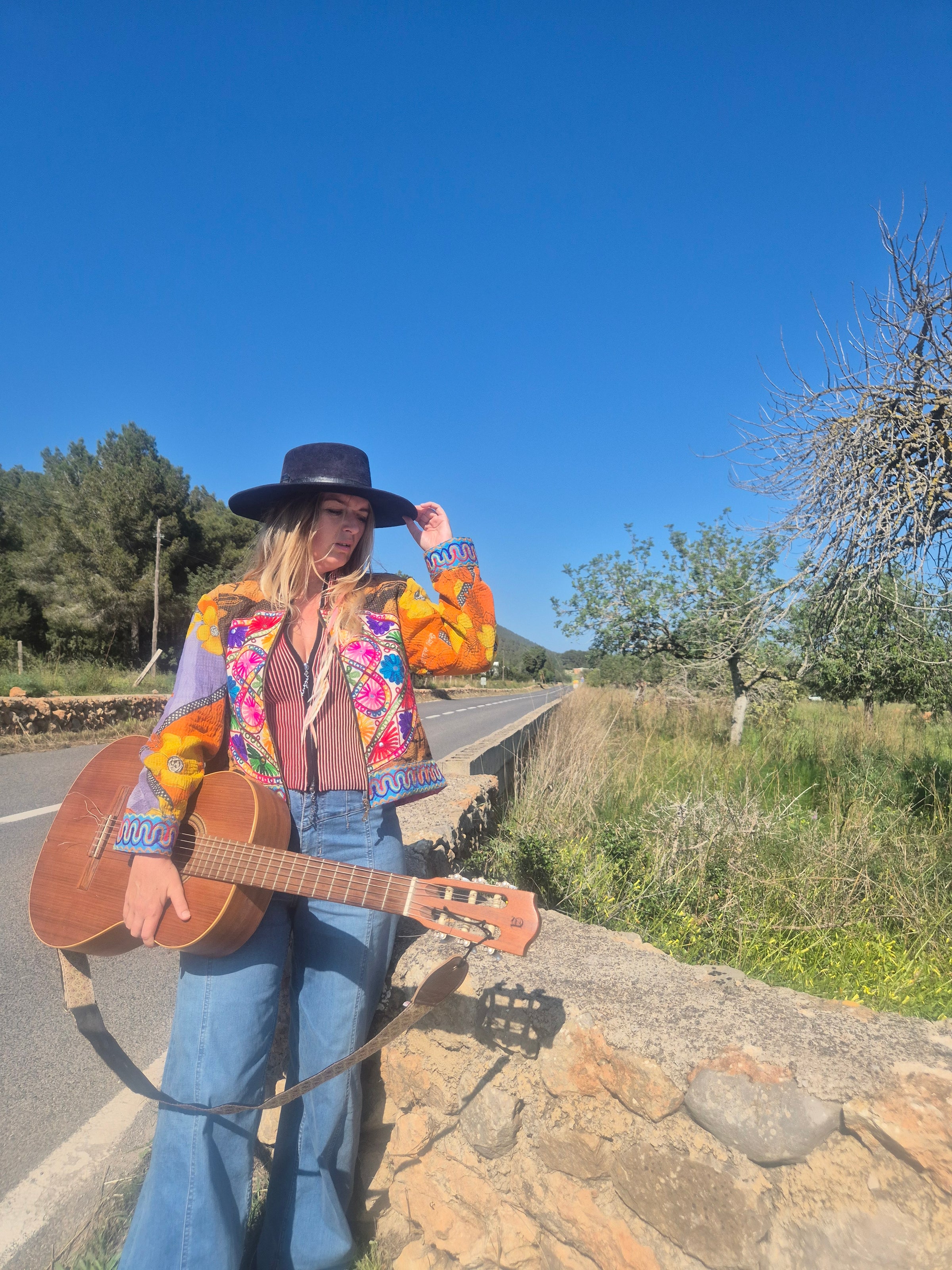 Beautiful jacket made of rare vintage Kantha fabrics and a Gujrati embroidery patch.