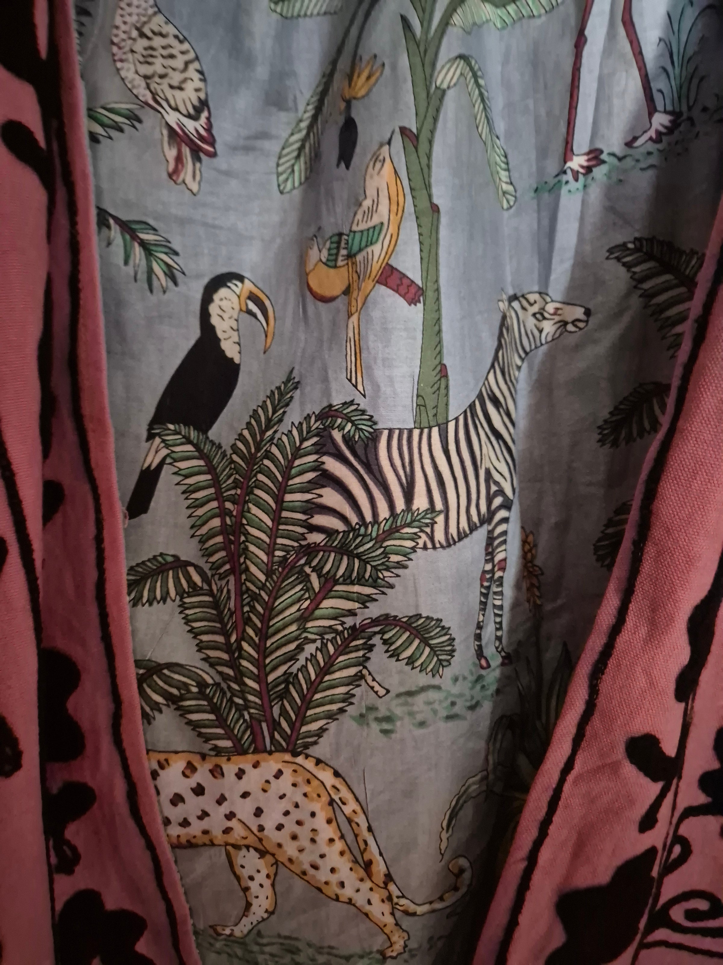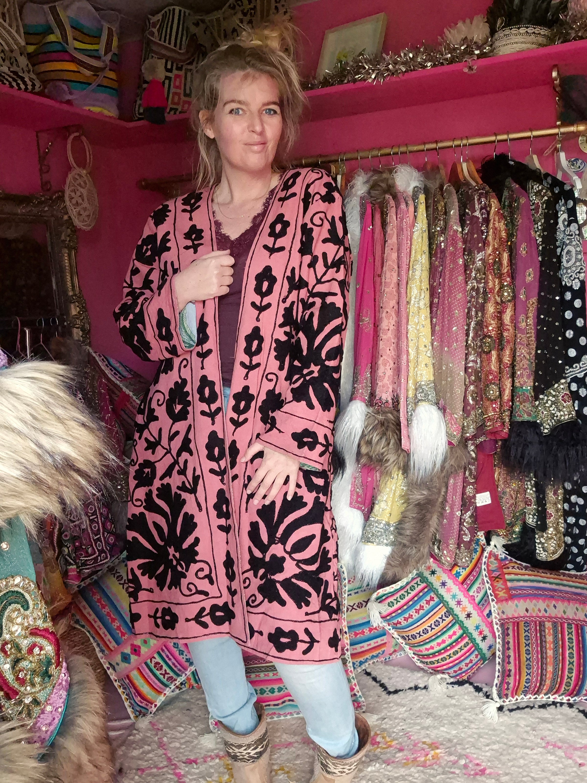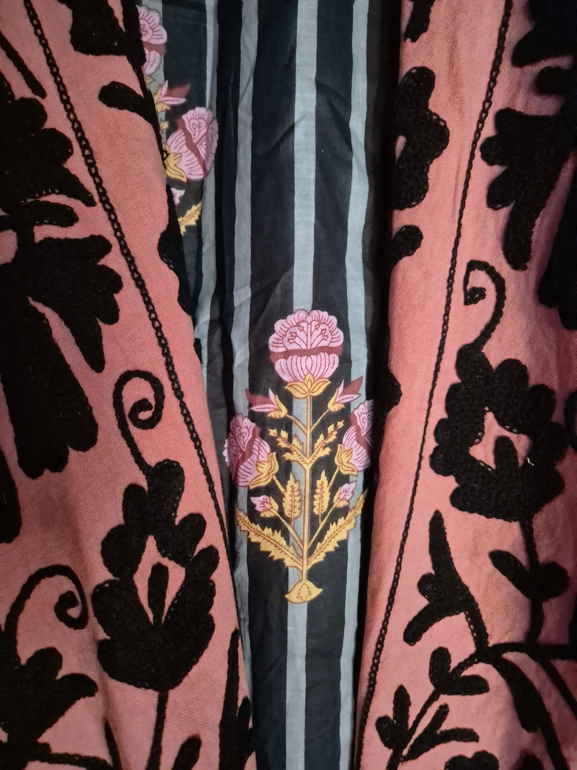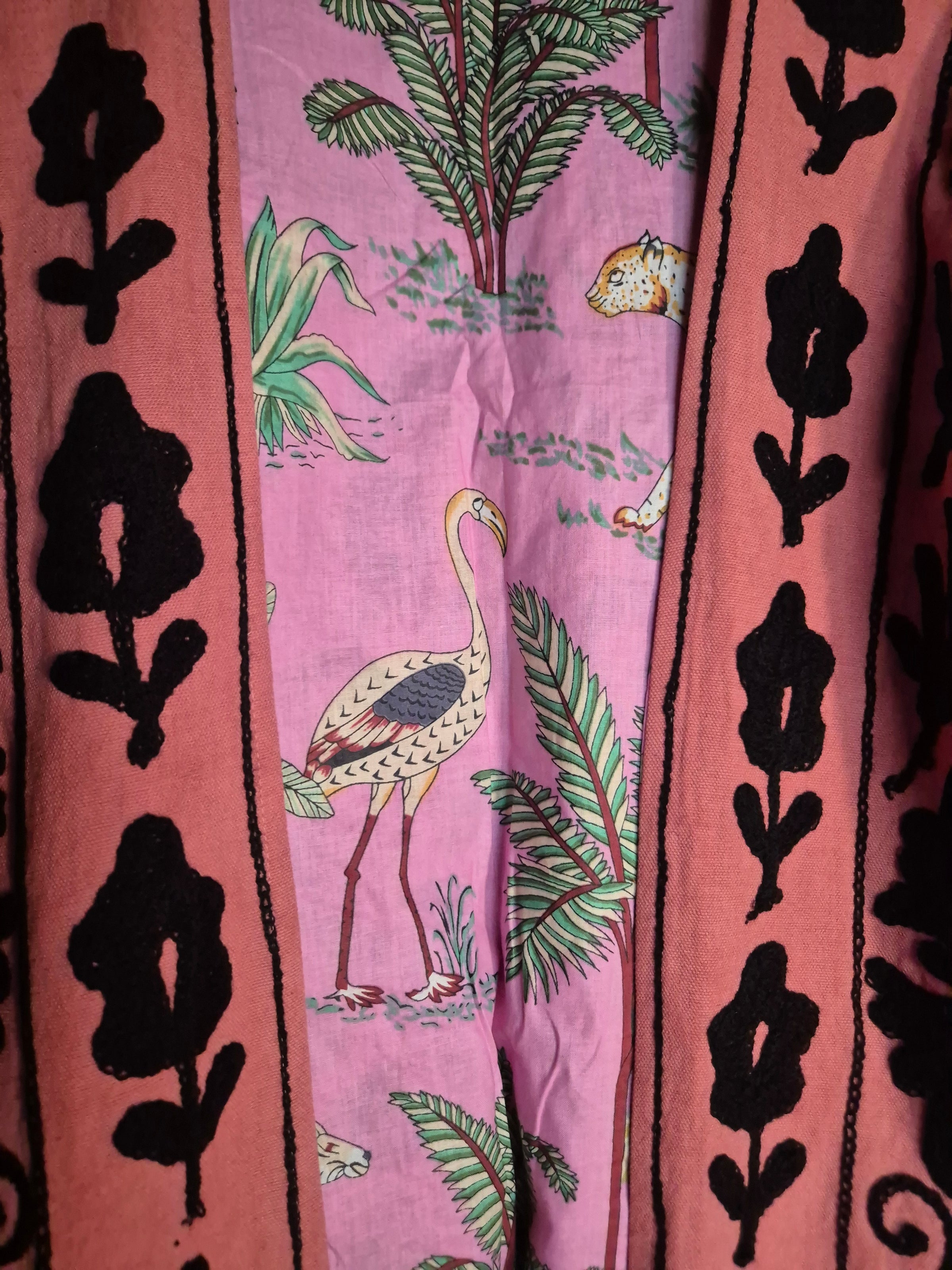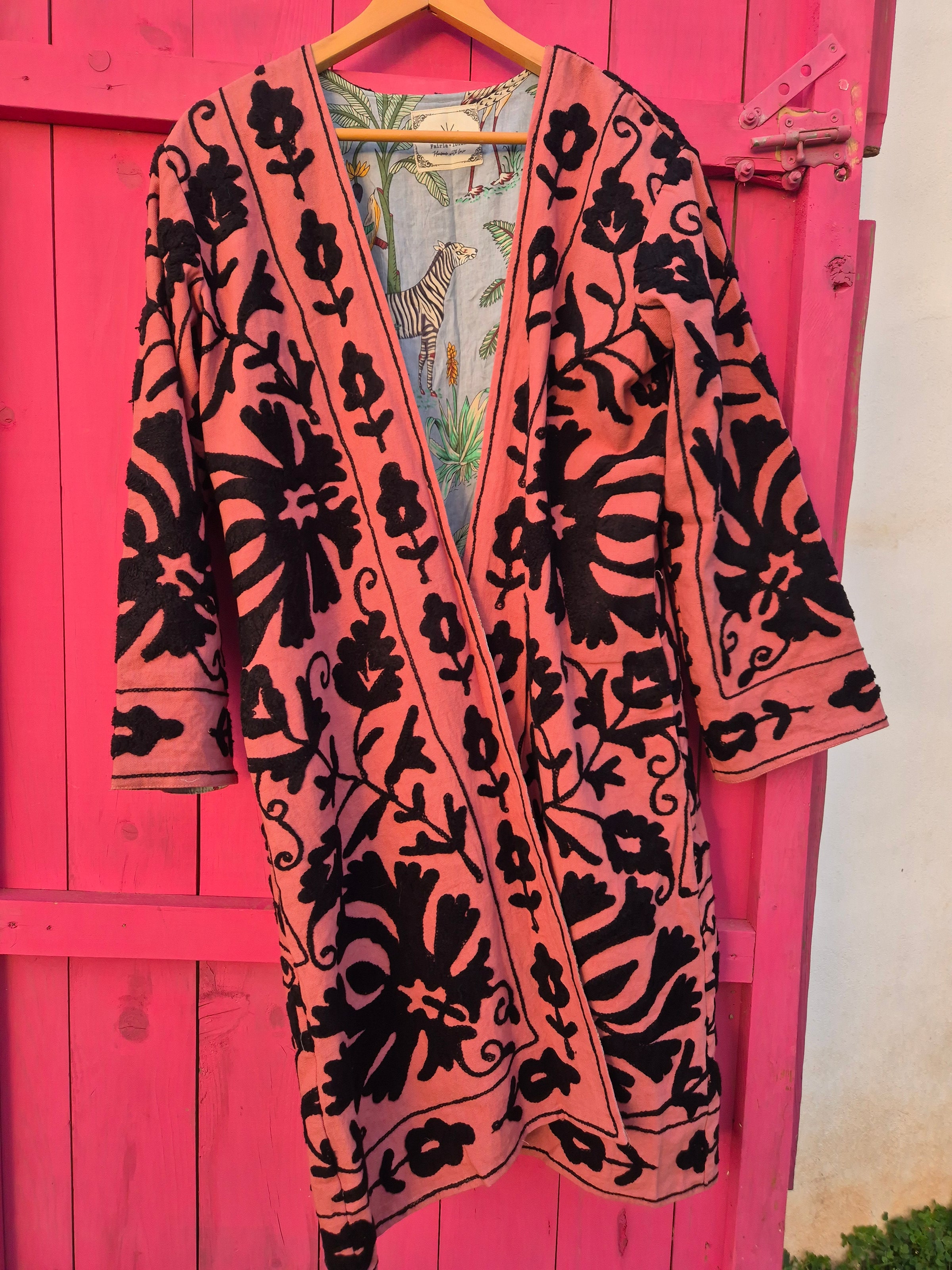 Beautiful handmade Suzani embroidered kimono, with an amazing printed cotton lining.
