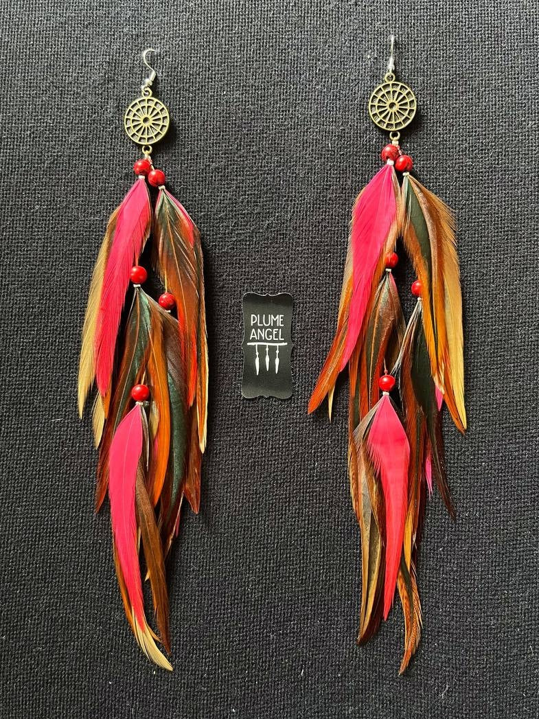 Beautiful handmade feather earrings. Made of natural feathers by mothers in Bali.