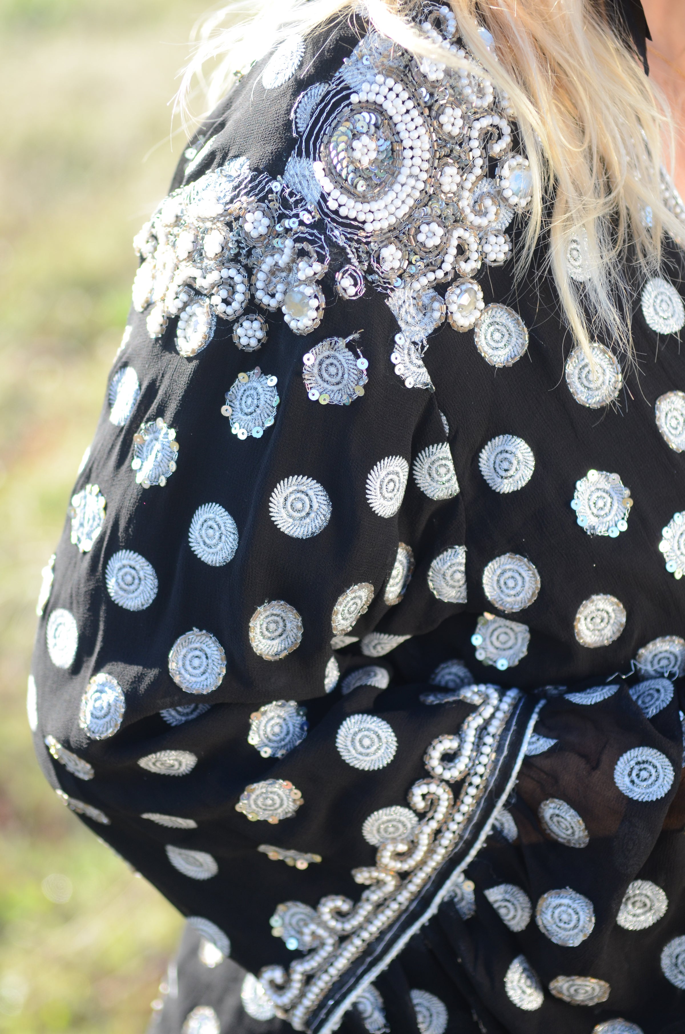 * because it's made of a vintage saree, it can be that the fabric is not always 'perfect'. For example, there can be a spot in the fabric or a small hole. And when you lose some beads, you just leave some sparkles into the world.