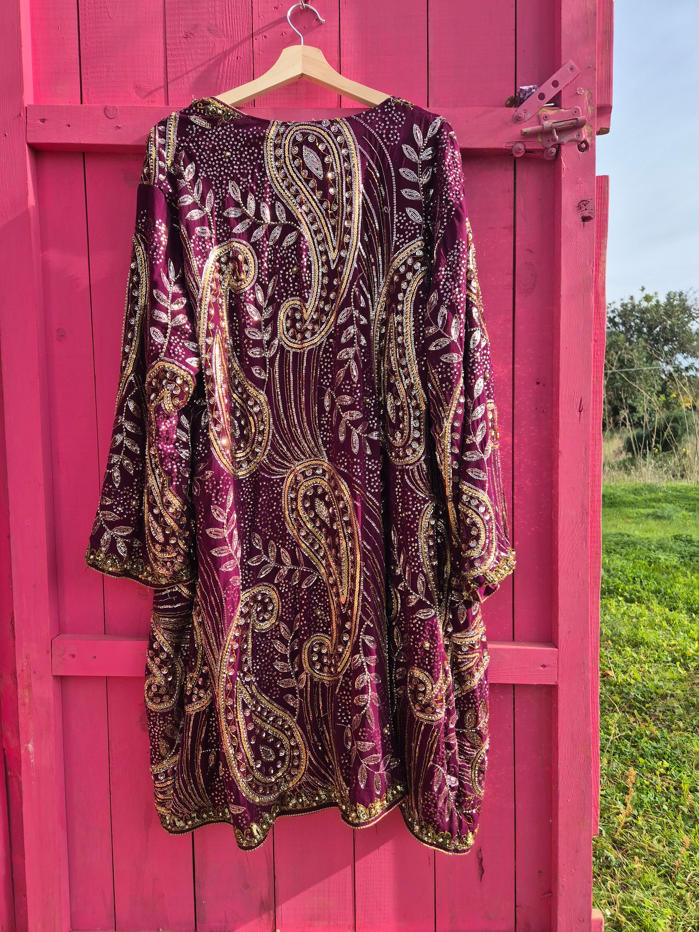 Beautiful kimono handmade with love. The kimono is made of a vintage saree and lined with cotton. Because it's made of a vintage fabric, you won't find the same piece somewhere else. This kimono also has pockets, which are almost invisible ;)